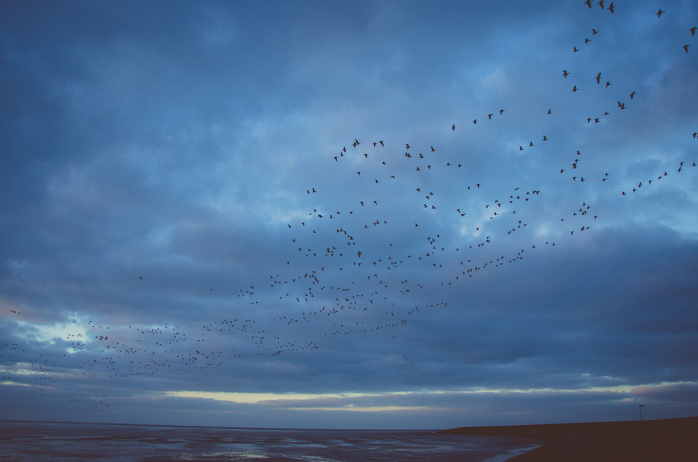 Immer Richtung Deich und Meer. Dann sitzt ein Greifvogel auf einem Zaun, in seinem Rücken die orangenen Lichter der Sonne… Vollbremsung, Greifvogel weg… Genau das passierte dann noch 2 mal. Und der Optimismus und die Hoffnung auf den perfekten Moment schwand dahin… Trotzdem noch immer den Deich vor Augen, parken irgendwo auf der Wiese, schnell auf den Deich……. und nur noch sprachlos… Es war einer, einer dieser magischen Momente in denen alles klappt und ich nicht mehr aufhören konnte….