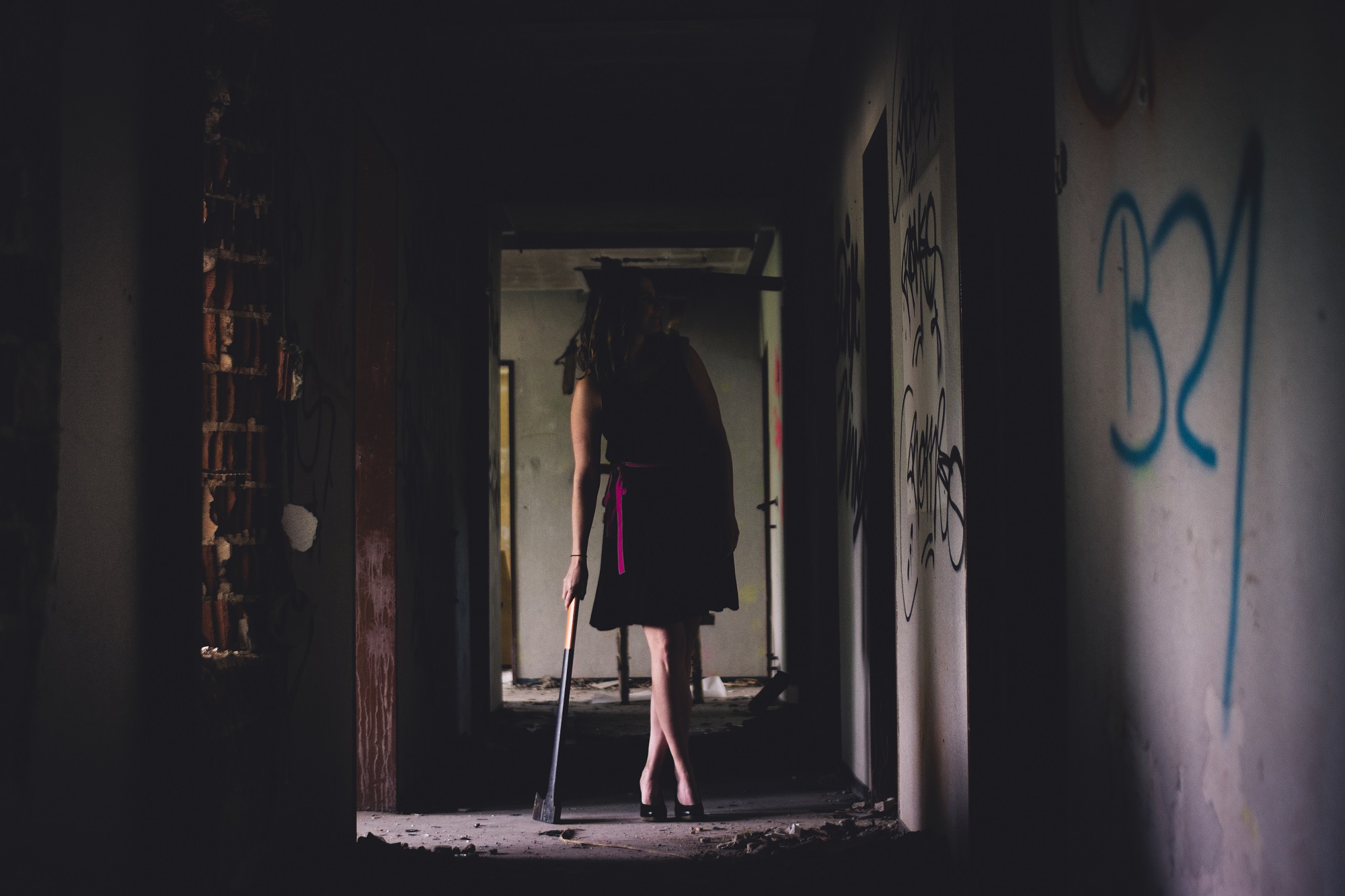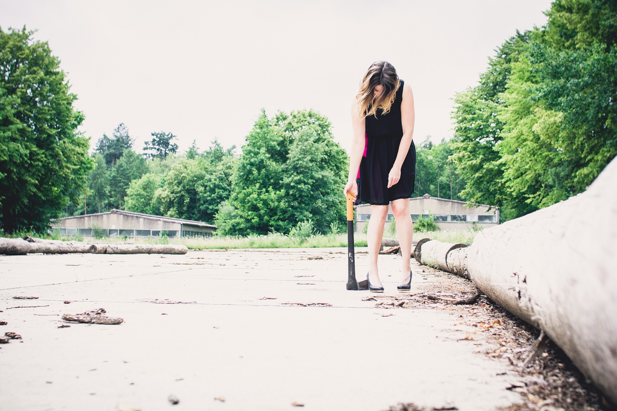 Die Axt war schnell besorgt und auch die Location ließ keine Zweifel offen. Man sagt meinen Bildern ja oft nach, dass sie zu ernst und zu dunkel seien (zumindest bei denen, die ich selbst inszeniere). Allerdings gibt es dabei ganz selten mal Anweisungen bezüglich einer starken Emotion. Diesmal sollte Wut im Vordergrund stehen. Eine Emotion, die eigentlich viel zu selten akzeptiert und toleriert wird. Ich zitiere nochmal Wikipedia: „…sie entspricht nicht dem erwarteten Sozialverhalten…“.