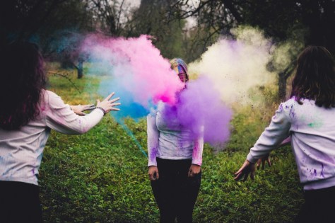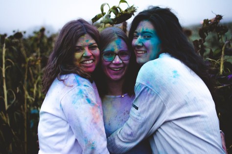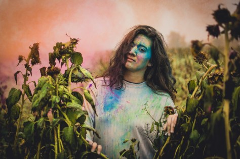 Die Mädels waren tapfer, warfen sich selbst die Farben um die Ohren und erlaubten es auch mir, das ganze ein bisschen zu beschleunigen und die Gesichter so zu verfremden. Relativ schnell war klar, dass der Fokus nicht auf dem Werfen der Farben liegen soll, sondern die Kunstwerke die sich in den Gesichtern der drei bildeten, in den Vordergrund zu rücken. Eine gute Entscheidung, denn so hab ich die 3 definitiv noch nie fotografiert.