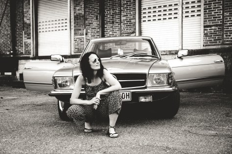 Und so landeten wir ganz ohne Plan und mit 4 Insassen auf einem kleinen Grundstück, umgeben von diesem klassischen Retro-Mauerwerk das schon für sooo viele Shootings herhalten musste. Unsere Hilfsmittel waren gute Freunde, gute Laune, ein bisschen Berliner Charme und ein paar Flaschen Bier und Spezi von der Tankstelle. Das reichte völlig aus. Und so fingen wir an, diese Schönheit (und das Auto) zu fotografieren…